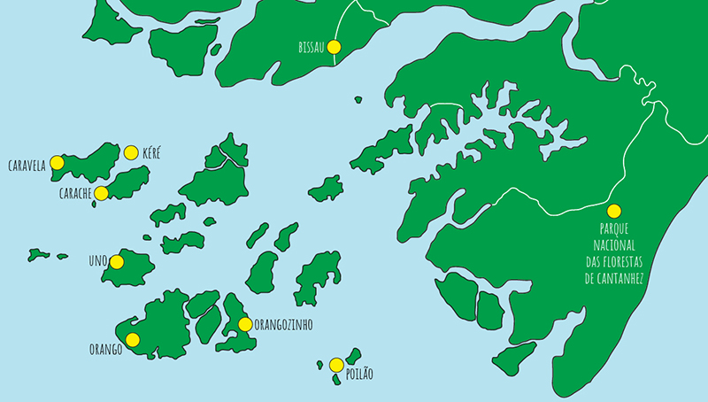 - Descoberta do dia-a-dia do povo dos Bijagós em aldeias florestais muito isoladas sob árvores centenárias onde muitas vezes se vê macacos